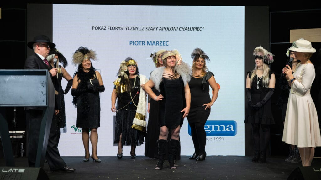 Piotr Marzec świętujący w tym roku jubileusz 25 lecia działalności florystycznej zabrał uczestników Targi Ogrodnicze Gardenia w magiczne lata 20 prezentując kreacje inspirowane polską famme fatale Apolonią Chałupiec.